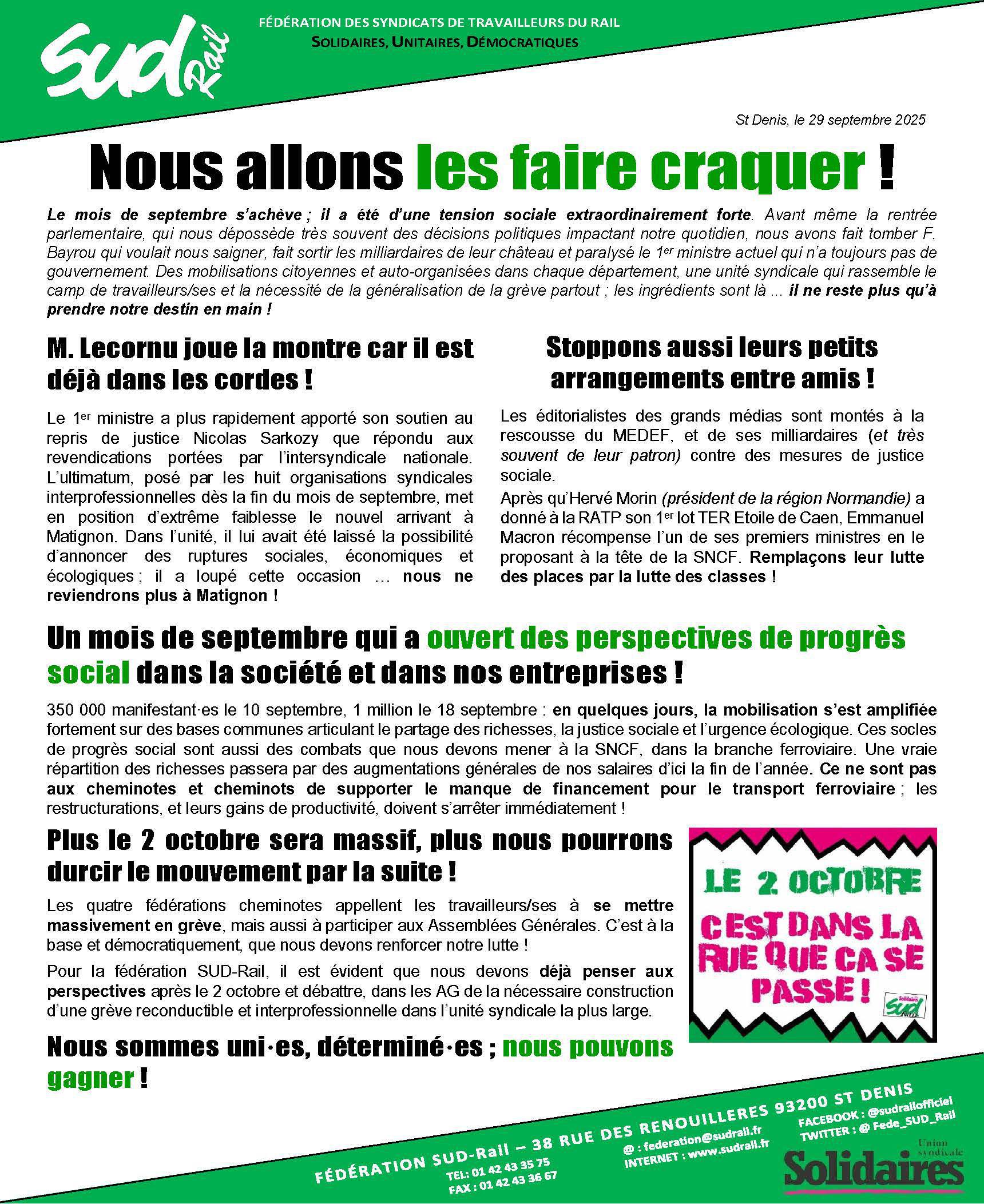 SUD-Rail // En grève le 2 octobre, nous allons les faire craquer !