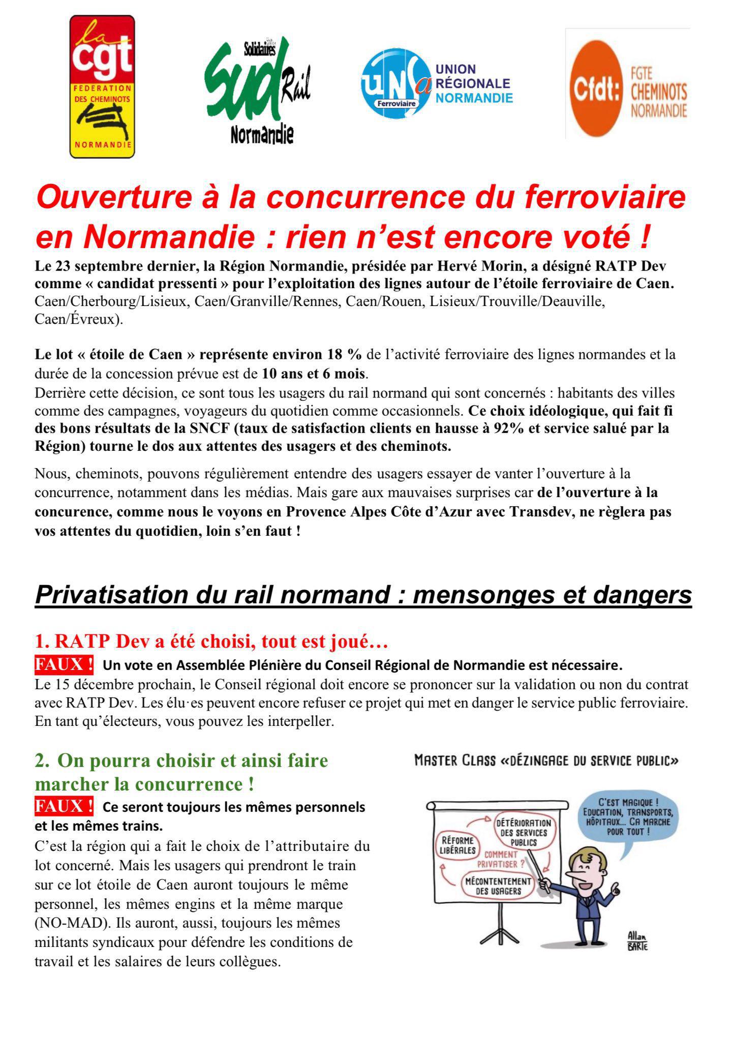Unitaire // Ouverture à la concurrence du TER en Normandie : rien n'est encore voté !