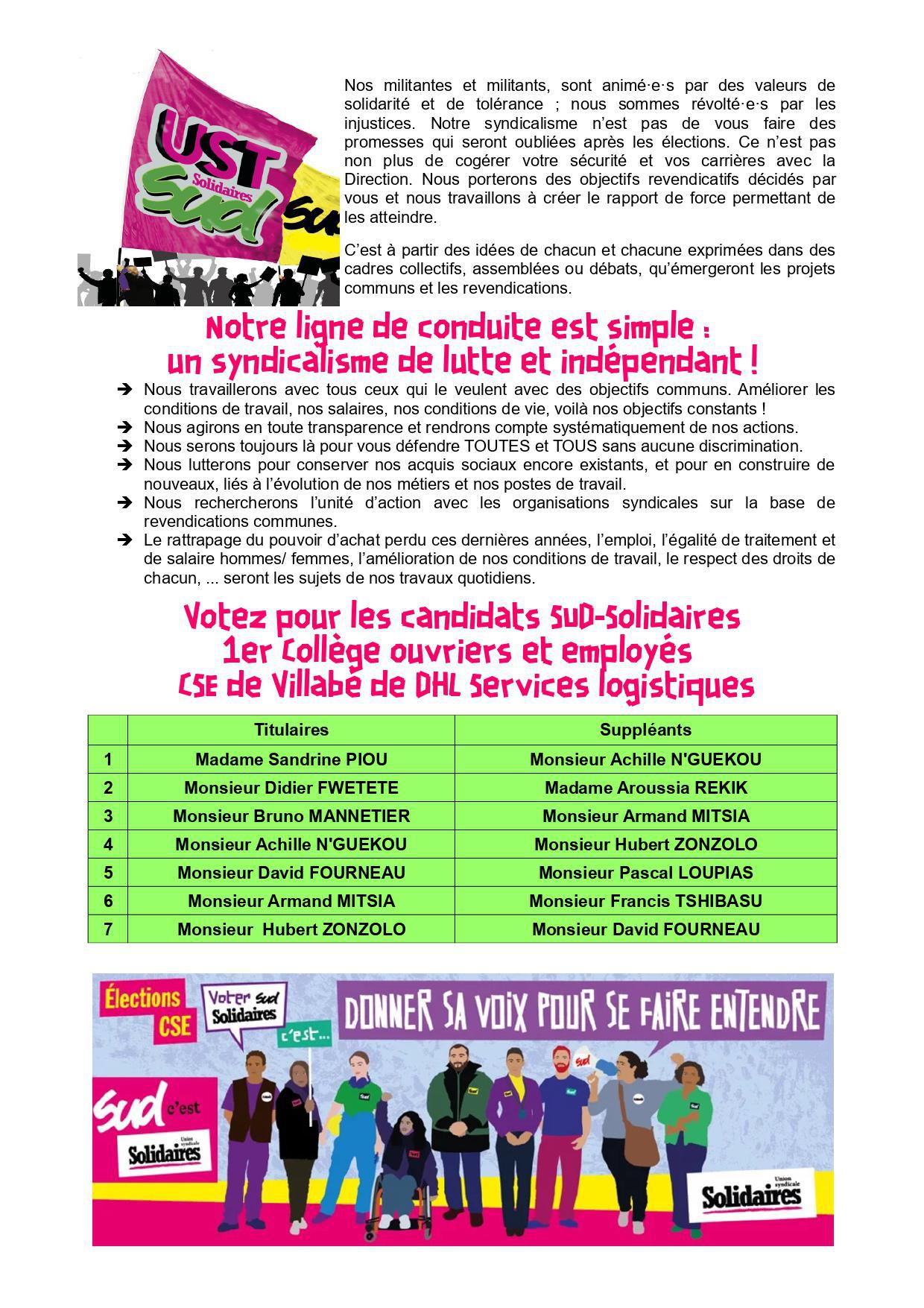 Profession de foi UST SUD DHL Services logistiques CSE de Villabé
