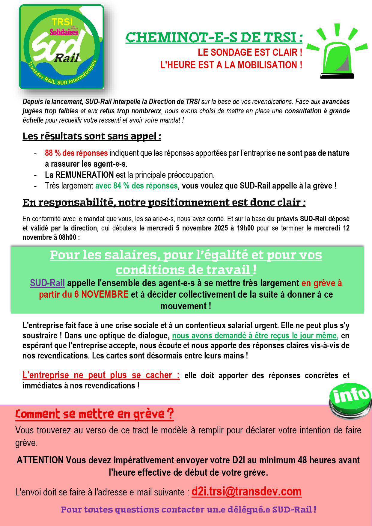 Préavis de grève SUD-Rail à TRANSDEV TRSI à partir du 6 novembre !