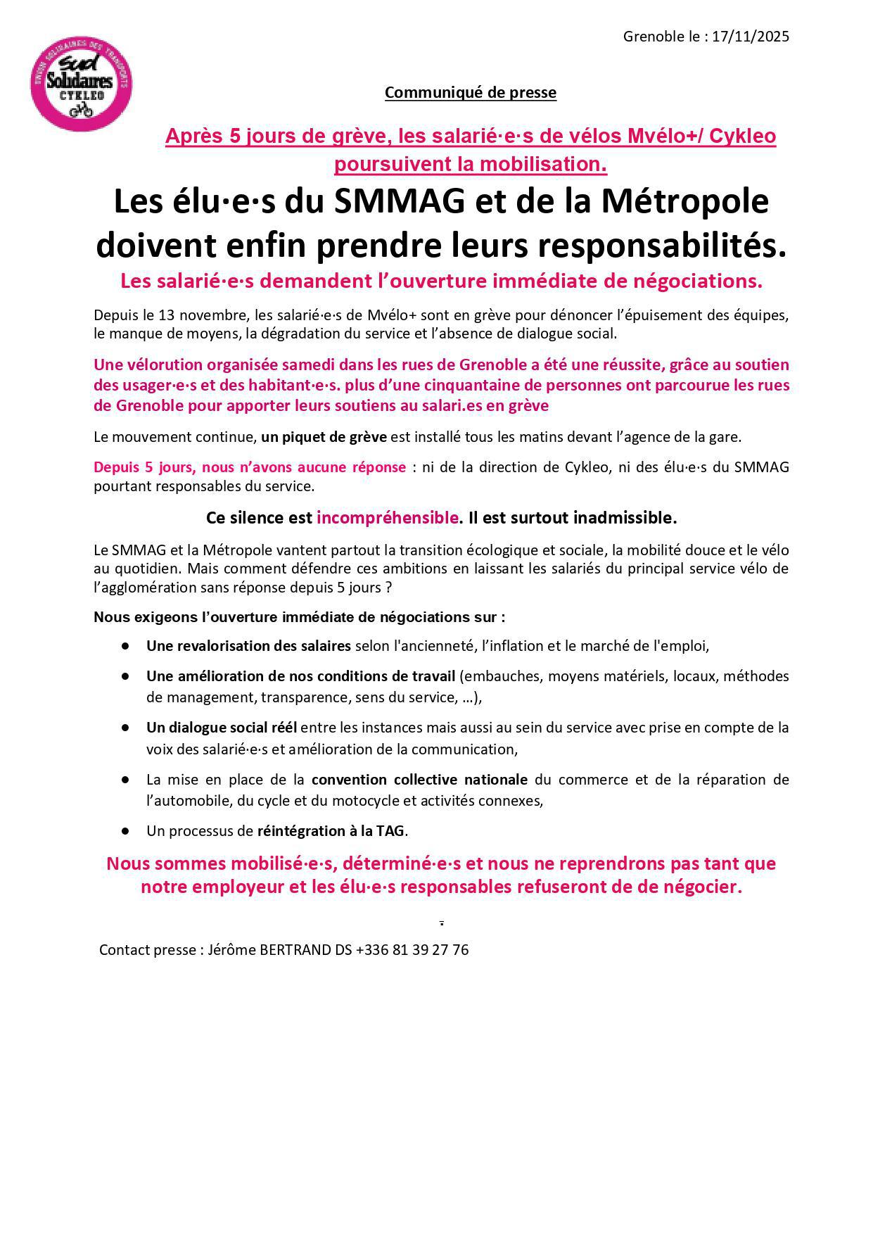 UST SUD // La grève à Mvélo+ / CYKLEO se poursuit