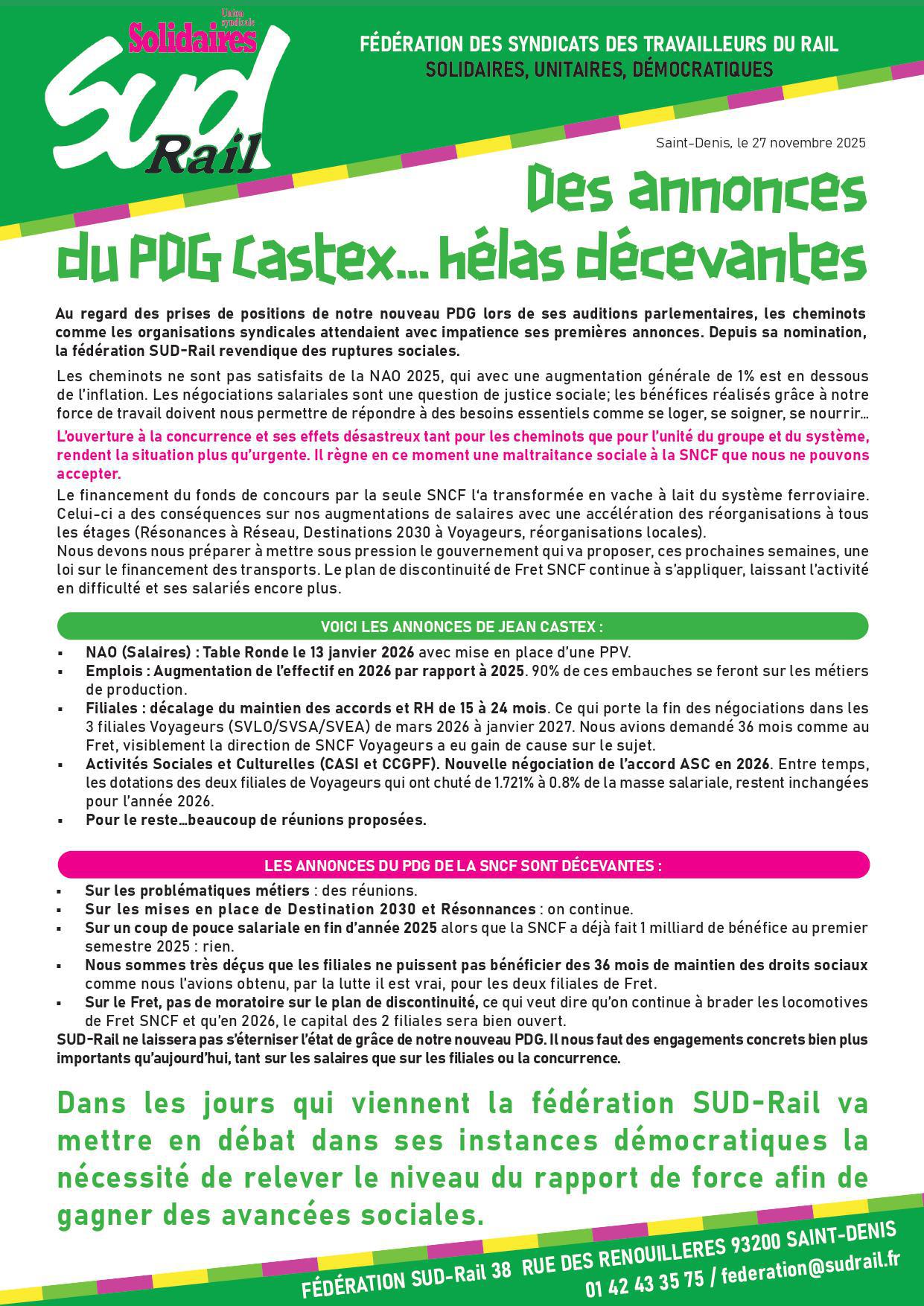 SUD-Rail // Des annonces du PDG Castex... hélas décevantes.