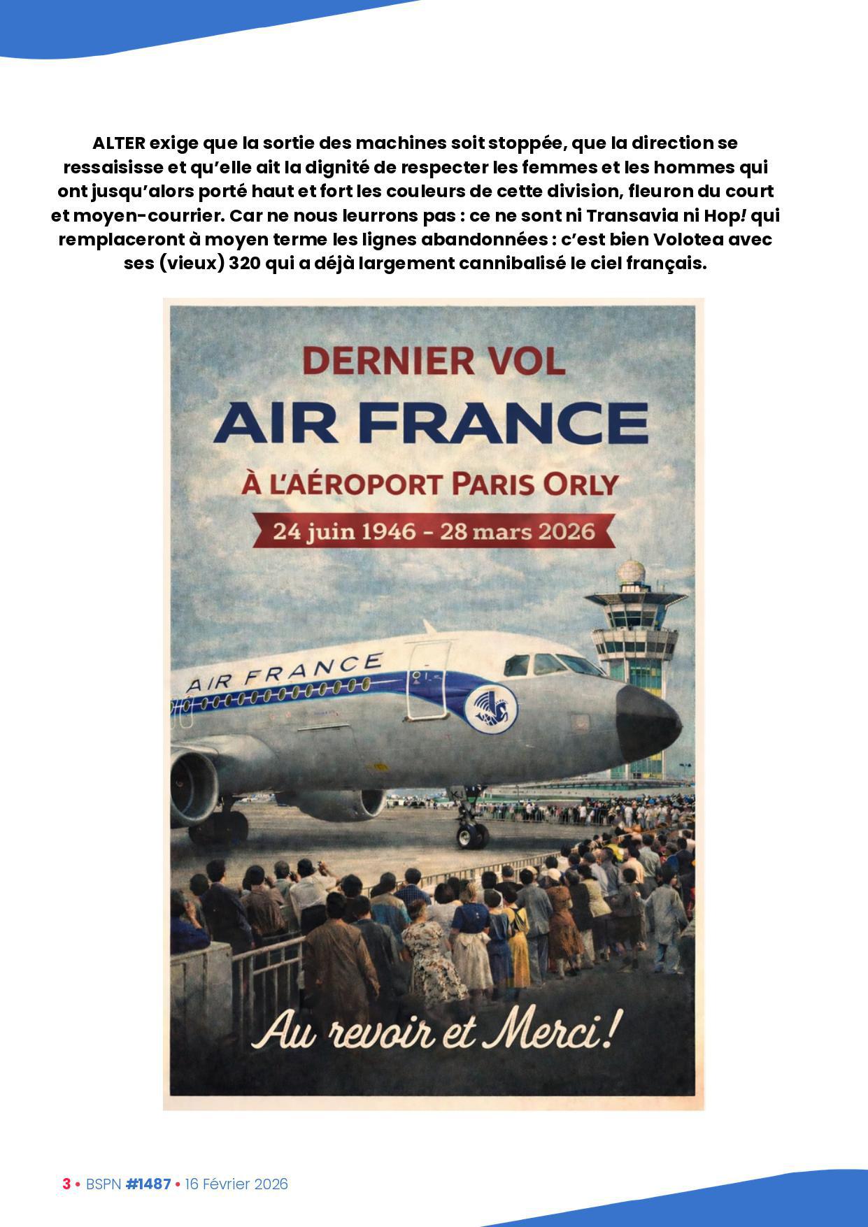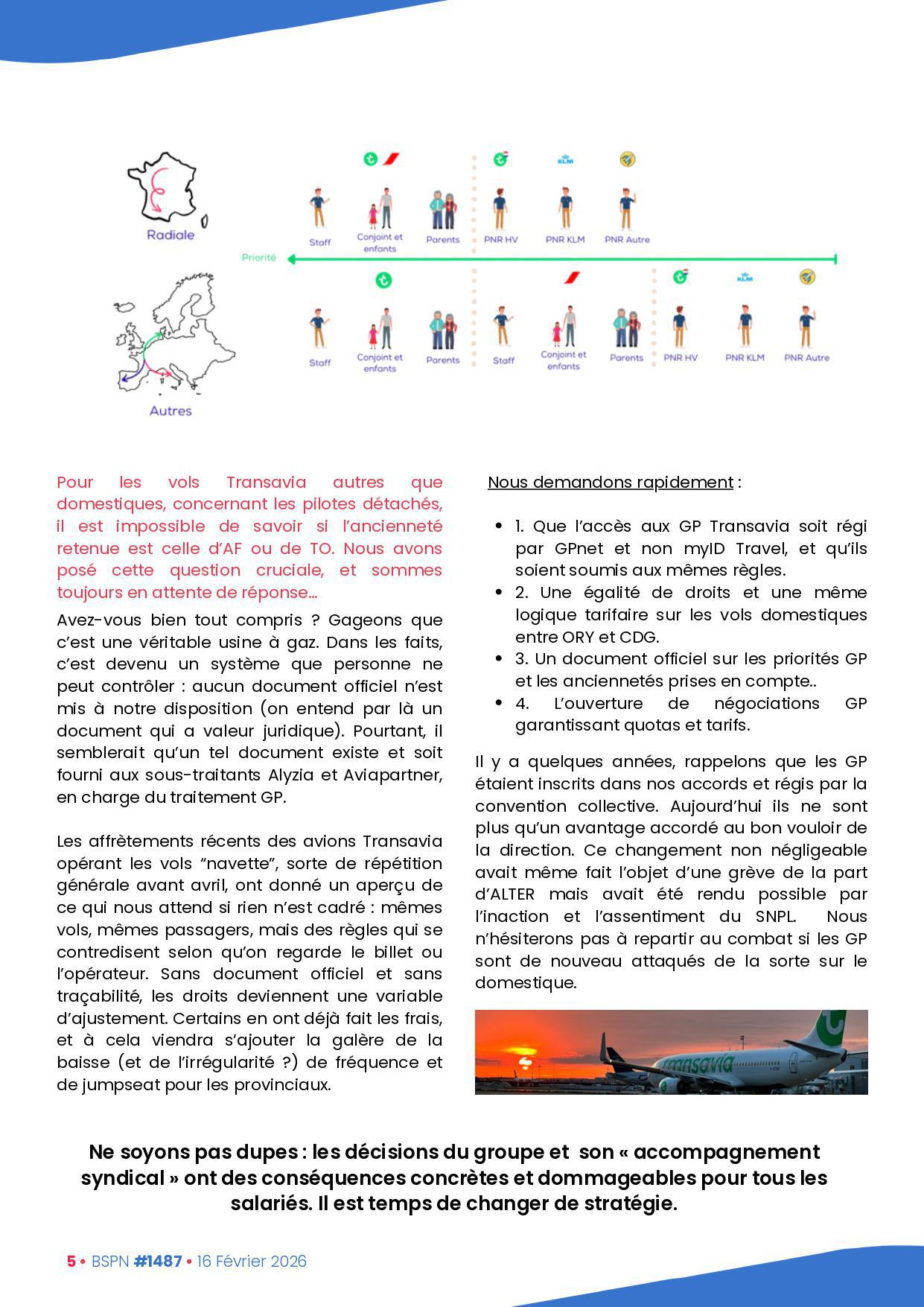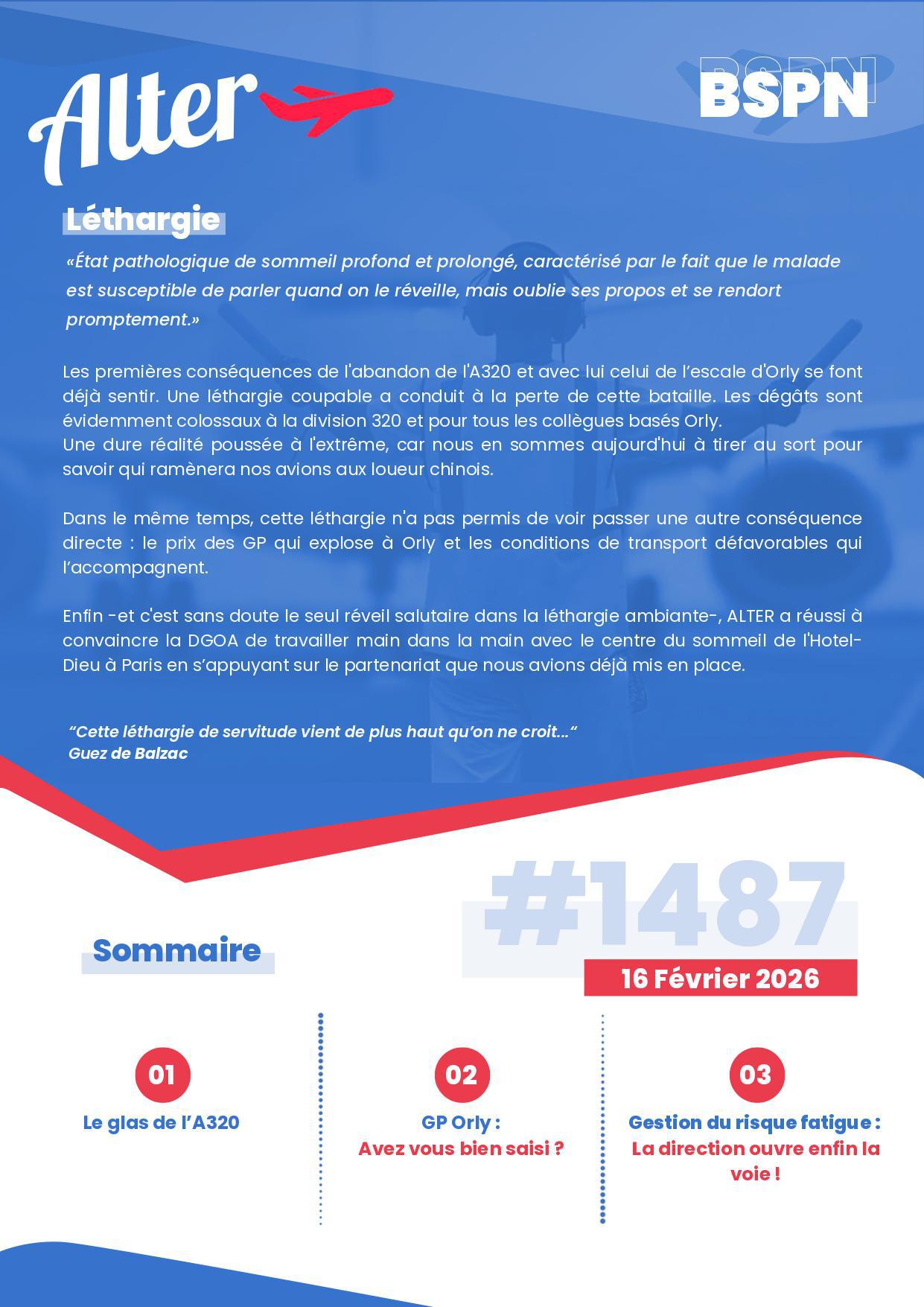 ALTER // Bulletin Syndical du Personnel Naviguant # 1487 du 16 février 2026