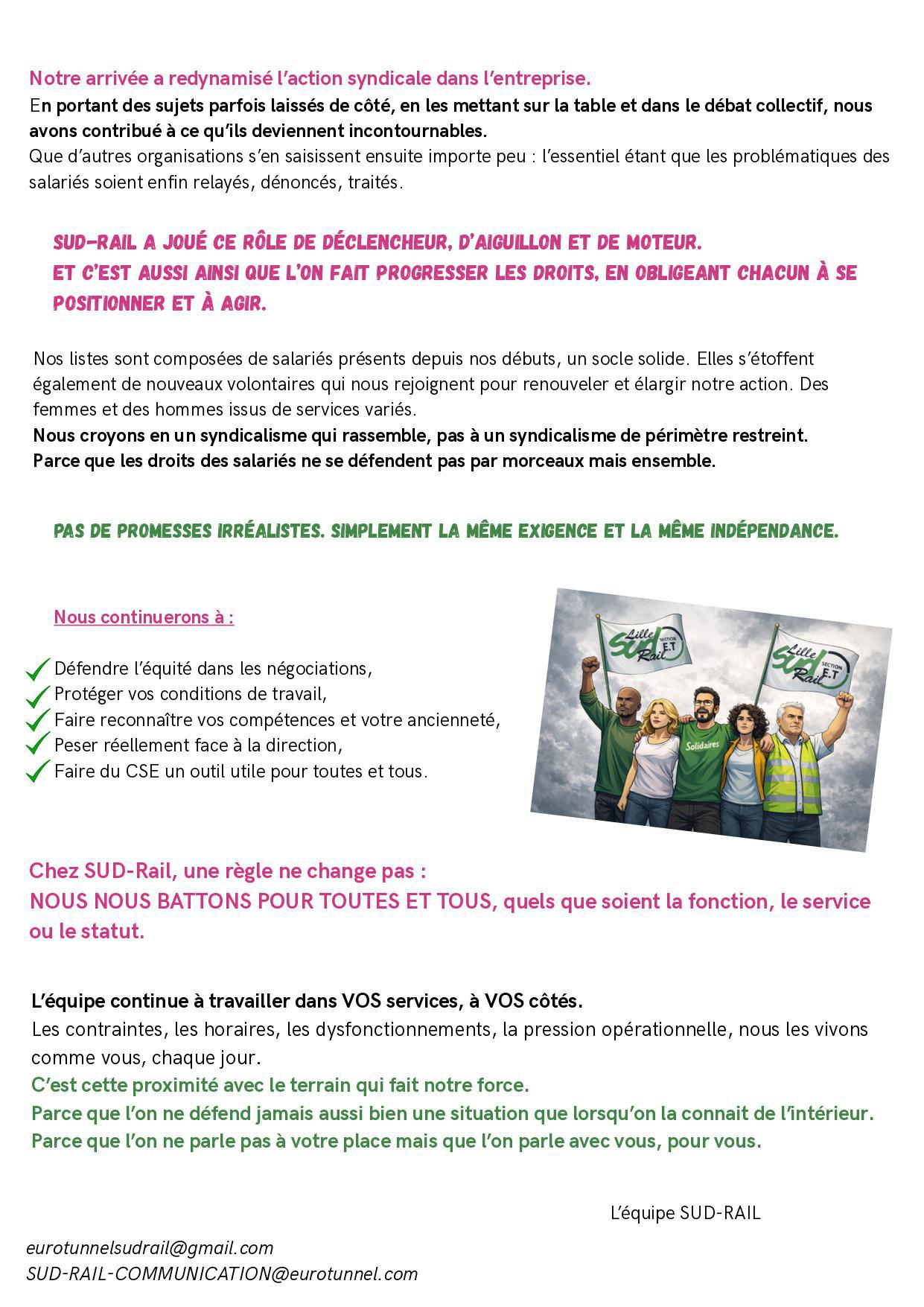 Élections CSE à EUROTUNNEL // Votez pour la liste SUD-Rail !