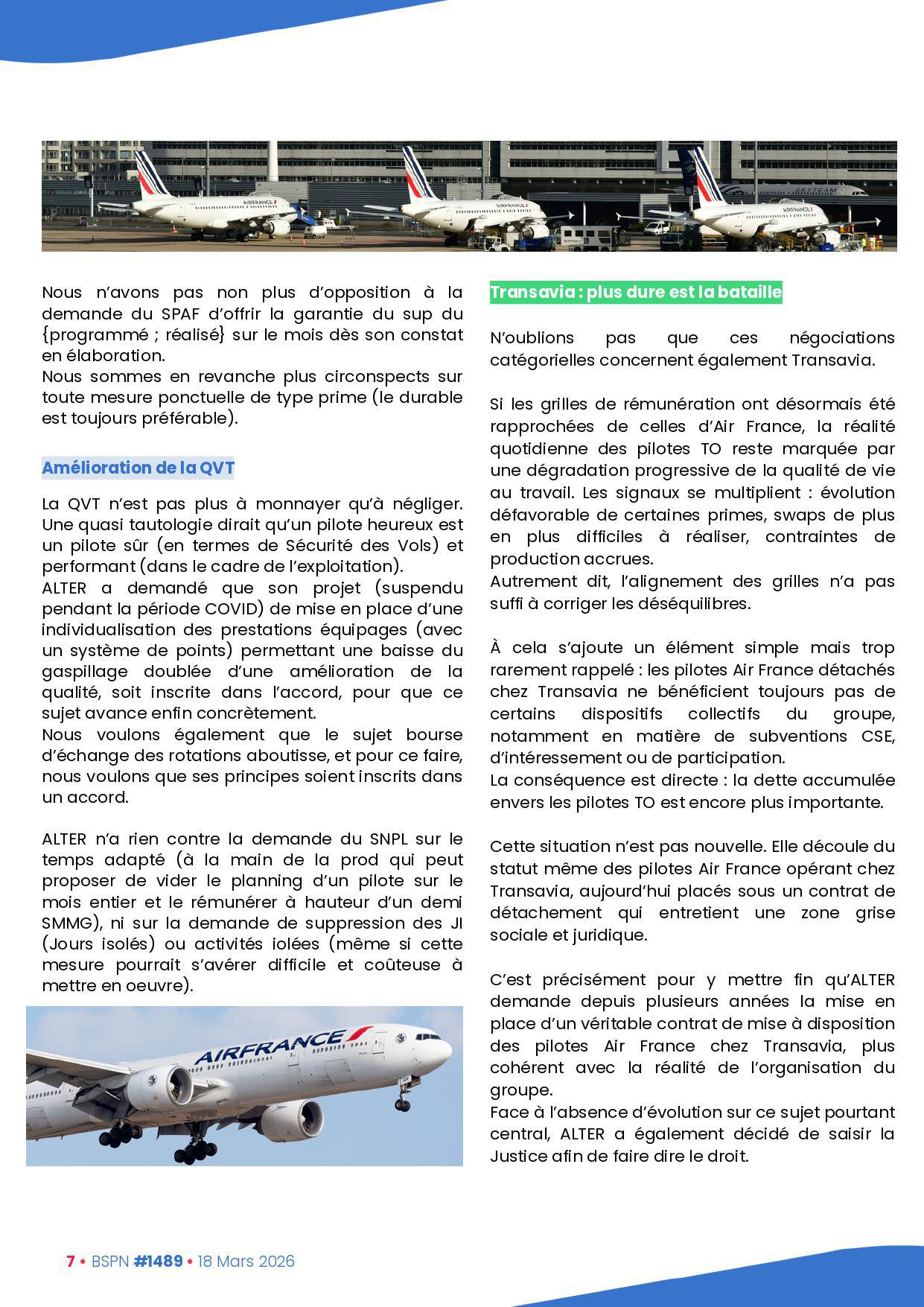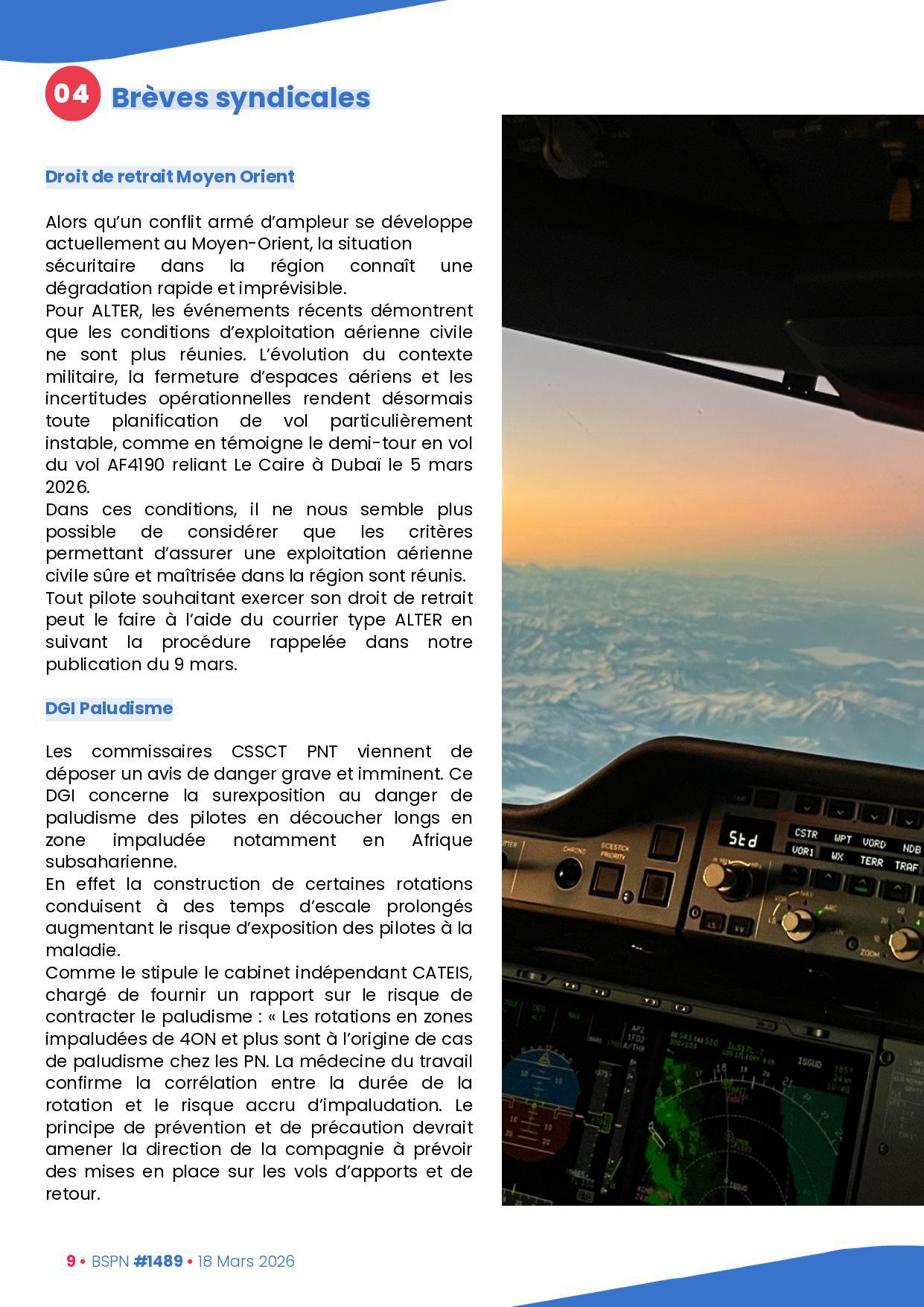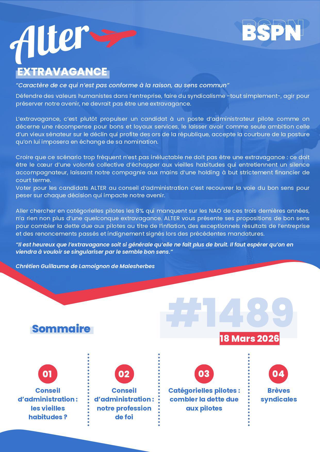 ALTER // Bulletin Syndical du Personnel Naviguant # 1489 du 18 mars 2026