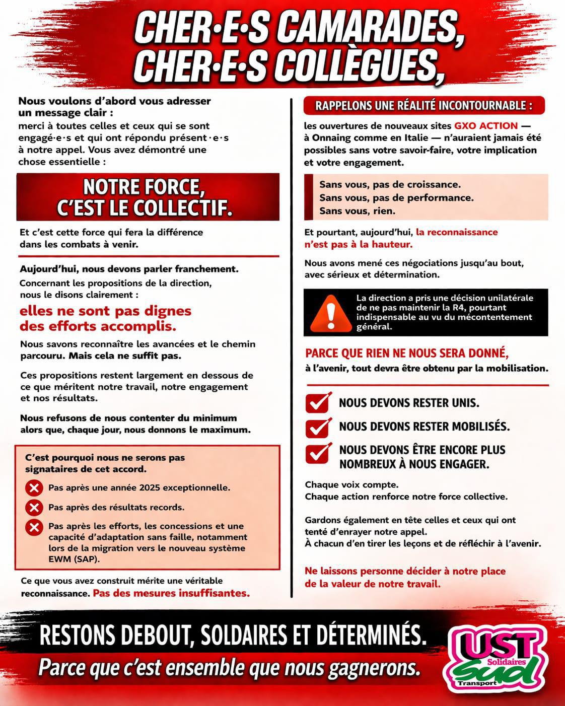 GXO Logistics // L'UST SUD ne signera pas les NAO 2026