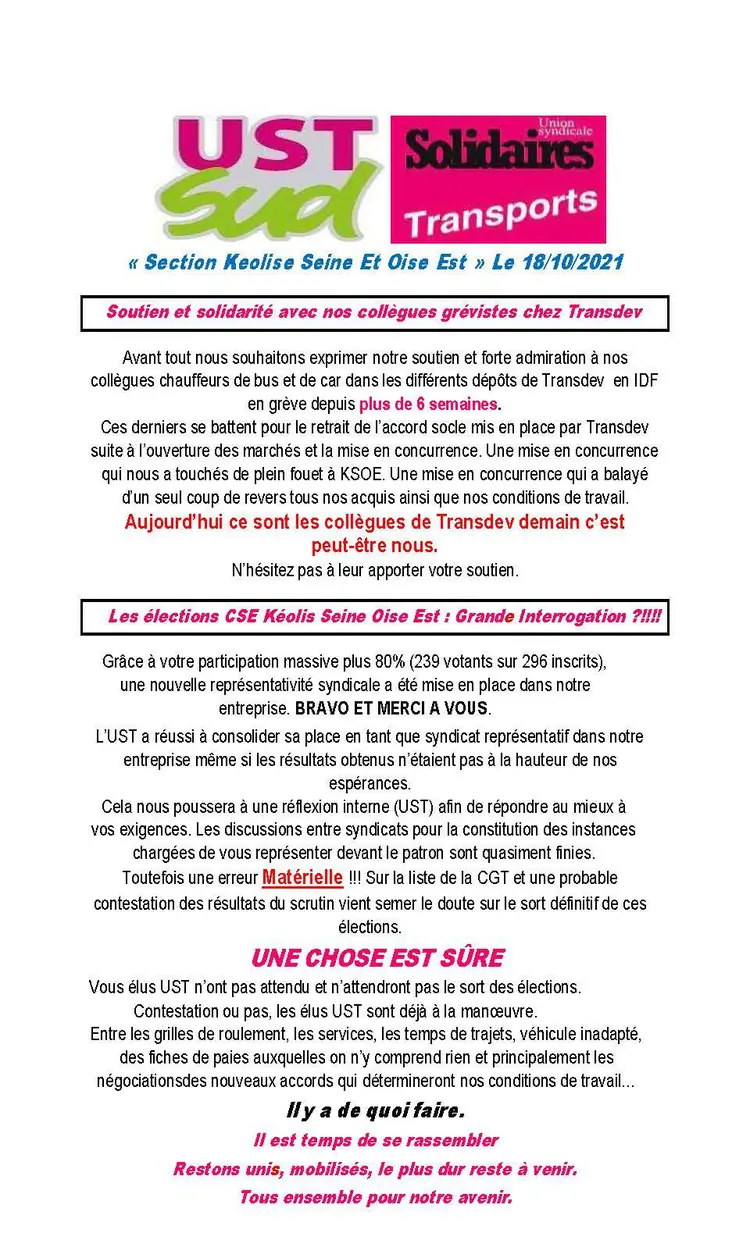 Tract keolis KSOE soutien aux grévistes de Transdev