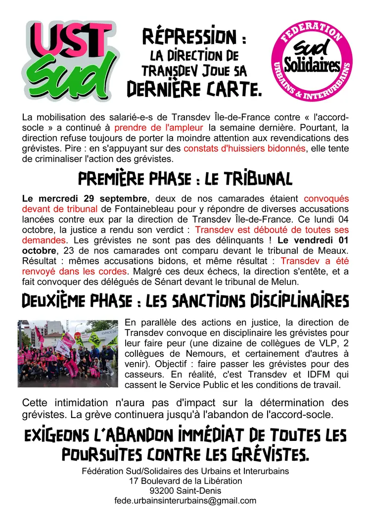 Tract SUD TISSEO intersyndicale